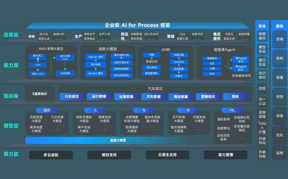 端到端的一站式AI工作空间深度融合了从企业战略规划到日常经营的全流程业务板块,,定向解决车企内部领域多、、、、部门多、、、链条长、、、、场景碎片化等难题,,,,支持车企快速构建以AI为核心的生产力写作体系,,,,实现任务执行与AI能力的无缝集成与交互